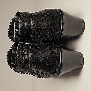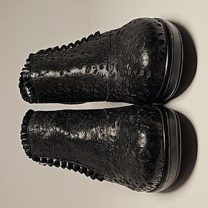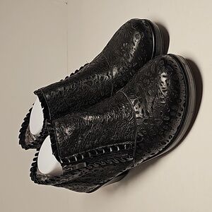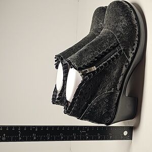 Alegria Hannah Delicut Black Embossed Leather Ankle Bootie Boots Size 40 Comfort