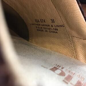 This is a pair of Alegria Isabelle Mules in color Tooled Brown. Women’s size EU 36, US 6-6.5. ASIC mule with a fitted toebox and a low profile wedge heel. Padded lining at the instep to allow for maximum comfort. Patented Alegria insole made with cork, memory, foam, and leather covered in latex. The insole is replaceable so you can change it as needed or even insert your own own orthotics. 2.25 inch heel. Medium with. Condition as seen in pictures.