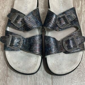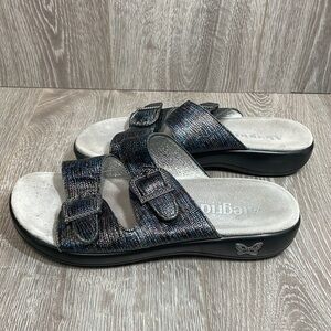 Alegria Jade Glimmer Glam Slide Sandals Buckle Leather Straps EU 39 (US 9)
