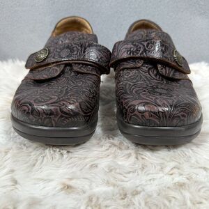 Alegria Joleen Brown Tooled Floral Leather Casual Comfort Nursing Size 40 9.5/10