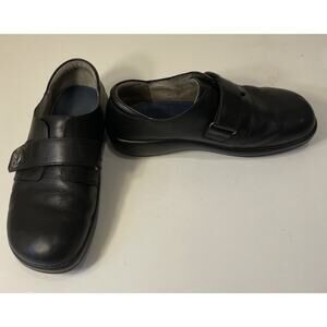 Preloved pair of Alegría Joleen comfort shoes. Some wear but lots of life left. Easy slip-on with adjustable hook-and-loop strap. Goes-with-anything-black. Originally $125.