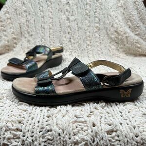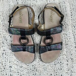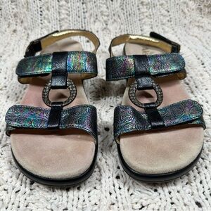 Alegria Julie Abalone Rose Multicolor Metallic Iridescent Black Rosette Sandal 9