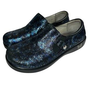 Alegria Kara Blue Metallic Sparkle Leather Clogs Size 40
