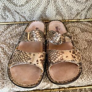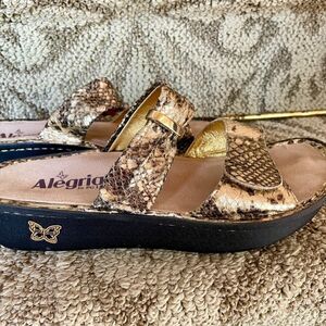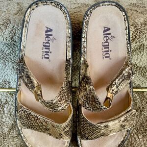Alegria Karmen Glitz Gold Snake Leather Sandals Size 40 or 9.5 to 10