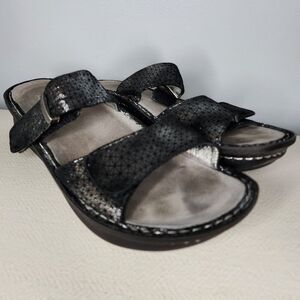 Alegria Karmen Metallic Fun Slip On Sandals 41 Black 10.5-11 US Leather Comfort