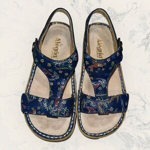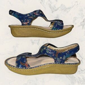 Alegria Kendra Birdland Adjustable Blue Wedge Sandals Women’s Size 7-7.5