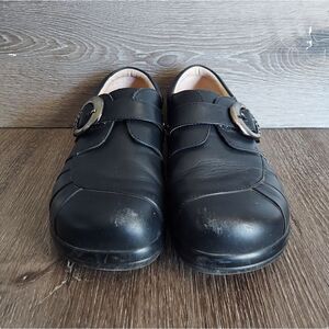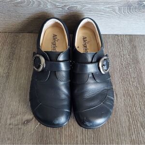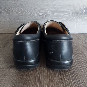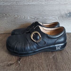 The loafer-style Alegria Khloe Black Nappa is part of the Alegria Career Fashion PRO Collection and features a stylish buckle with an adjustable velcro closure and a comfy padded collar. The coated leather upper is stain proof, and the slip resistant lightweight outsole features a slim silhouette. Loaded with cork, memory foam and latex, the removable footbed creates a perfect fit by forming to the natural contours of your foot. With superior arch support and plenty of room in the toe box, the Alegria Khloe Black Nappa can keep your feet happy even after the workday is done.