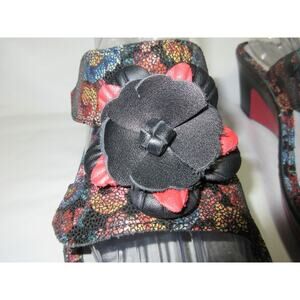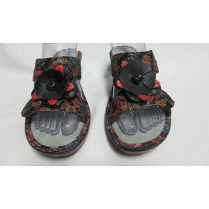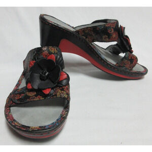 Alegria Lana Flora Fiesta Womens Size 37 7-7.5 Slide Wedge Sandals Black & Red