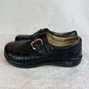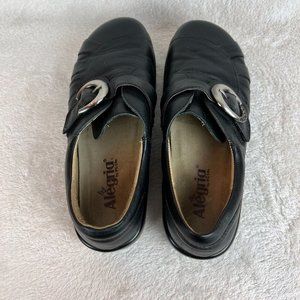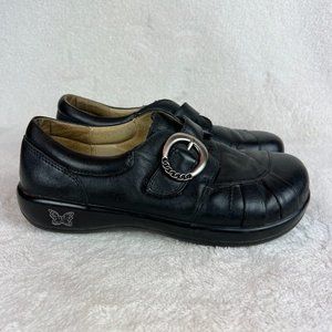 Alegria Leather Shoes 9/9.5 Womens 39 EU Khloe Black Nappa Buckle Wedge