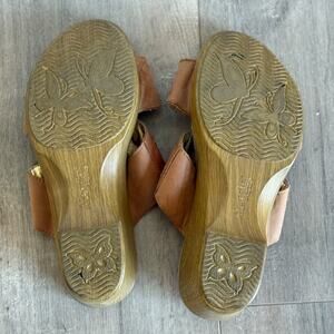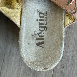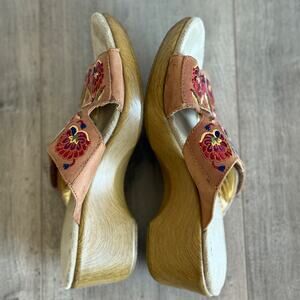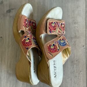 Alegria Linn Embroidered Leather Slip On Wedge Sandals Cognac Women's Size 6-6.5