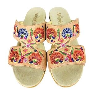 Alegria Linn Embroidered Slip-On Chunky Wedge Heel Clog Sandals Size EUR 39 US 9