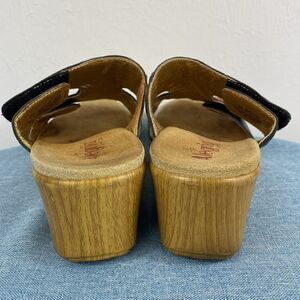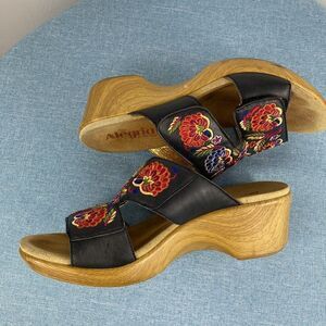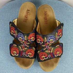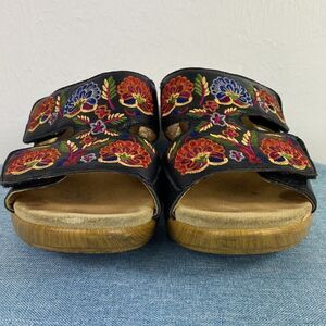Alegria Linn Black Leather Floral Embroidery Clog Sandals