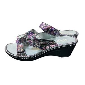 Alegria Lofti Funtastic Snake Print Leather Wedge Sandals Size 37