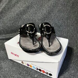 The Alegria Lola thong sandal by Alegria Shoes features a wedge heel with Alegria's patented footbed technology built right in! With an adjustable hook & loop designed for day and night comfort, your feet will be happy with the fashionable Lola from Alegria Shoes! Gently worn only a few times, with box. Perfect for both casual and dressy occasions.