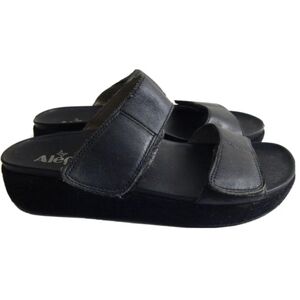 Item: Women's Maisie Tahiti Leather and Woven Sandals Black Adjustable Straps Comfort