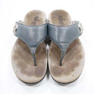 Alegria Molly Blue Leather Paint Splash Lightweight Flat Thong Sandals - 8/EU 38