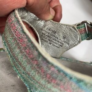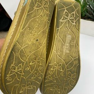 Vibrant Alegria sandals with multicolor stripes. Comfortable and stylish for any casual outing.