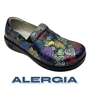 Alegria Multicolored Embossed ROSES Leather Comfort Shoes Size EU 37 US 7-7.5