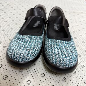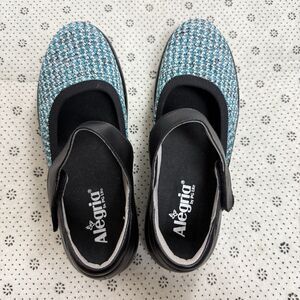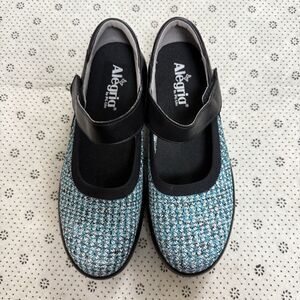Alegria Olivia Black Blue Tweed Blend Mary Jane Shoes Women Size 39 US 9 Comfort