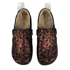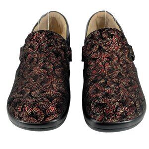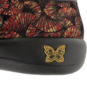 Alegria PAITYN Red and Gold Metallic Fan Print Clogs Size 37 Comfort Shoes