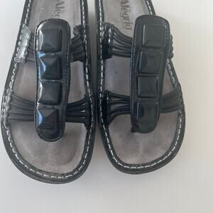 Alegria PIS-101 'Pisa' Black Patent Sandal SZ 37 Comfort Strappy