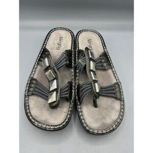 Alegria PIS-123 Womens Leather Thong Sandals Studs Size 40 Silver Black