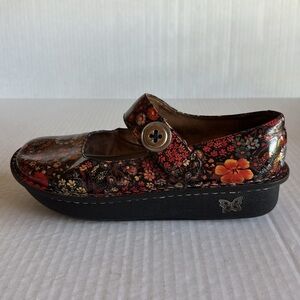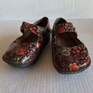 Alegria Paloma midnight garden in patent. Size 39 = US 8 1/2-9. Please see all photos for condition and wear. Pre owned