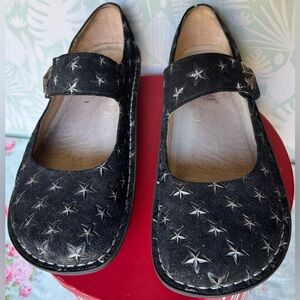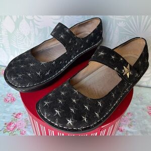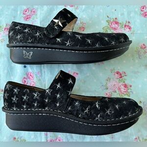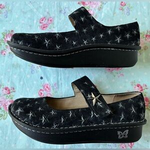 Alegria Paloma Star-Studed Embossed Mary Jane Flats in Black Size 40 = US 9.5