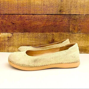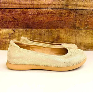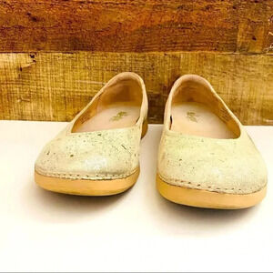 Petal in Gold Flake is a sleek, athletic ballet flat with a glove-like Italian leather upper and the addition of a padded heel bumper to provide additional comfort. Not thin and lacking cushion like your typical flat! The flexible slip resistant outsole provides unimaginable support and stability making this your go-to shoe for everyday wear. And like most Alegria shoes, the Alegria Petal Gold Flake has a generous toebox so toes can wiggle and breath.