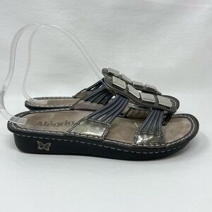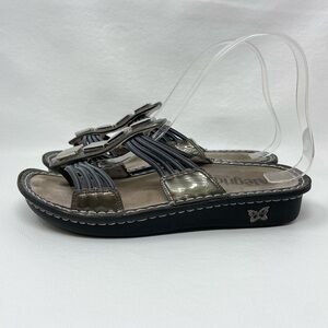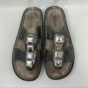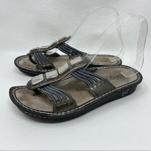 Alegria Pisa-123 Chrome Patent Leather Thong Sandals Shoes.