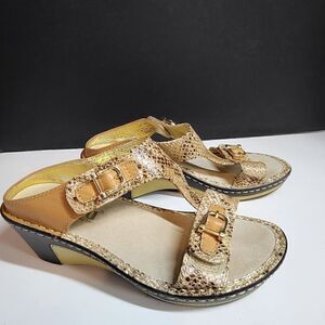 Alegria sandals (NWOT). Size 36 (US 5.5). Leather uppers. Velcro closures. 1.75" heels.