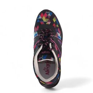 Elevate your walking experience with the Alegria TRAQ Qarma Right Angle Multi Walking Shoes, a stunning fusion of style and technology. Adorned in a striking black and pink palette, these shoes feature vibrant geometric designs that not only catch the eye but also inspire confidence with every stride.