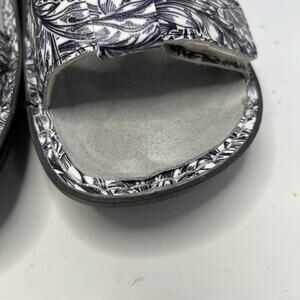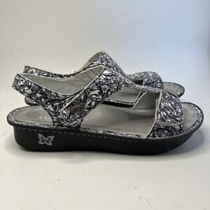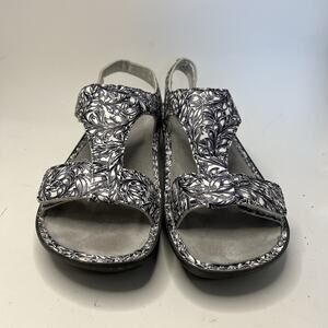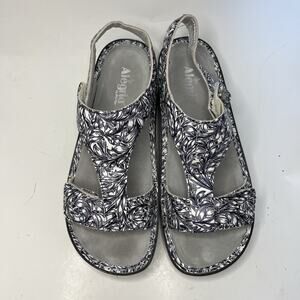 The Alegria T-Strap Sandals Kendra Leather KEN-769 in women's sizes US 12.5-13 / EU 43 are a stylish and comfortable choice for the summer season. With a floral pattern and multicolor design, these sandals feature a hook & loop closure for easy wear. Made of high quality leather and with a flat heel, these sandals are perfect for everyday wear. The slingback style and standard shoe width make them a versatile option for any casual outfit. The Alegria brand ensures both quality and fashion in these trendy sandals.