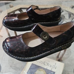Chic tortoise shell Mary Jane shoes with a stylish button strap. Ideal for versatile wear. Alegria Paloma 407 Cheeta Animal print Mary Jane shoes size 38. Please refer to size chart in pics, size US 8. Excellent pre loved condition, measurements in pics, smoke free home, ships next day. Over 2,500 Poshmark Sales. Bundle and Save!