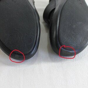 Wear on toes on bottoms of shoes. Fade line on tongue of shoes. See pictures. Still lots of life left in these shoes