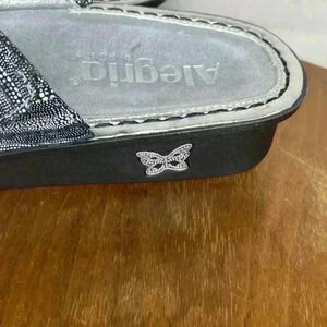 Alegria Vanessa Circulate Leather Sandals Silver Black Women's Size 38 US Sz 7