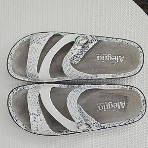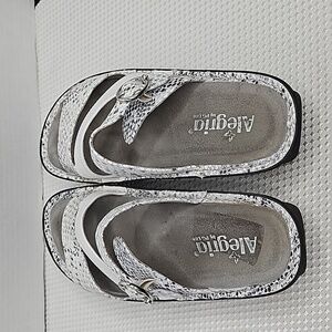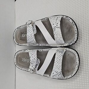 Alegria Venus Pewter Silver/Black Snake Print Sandals Women's Size 8.5