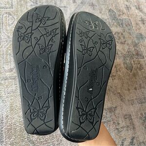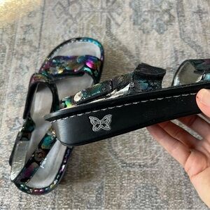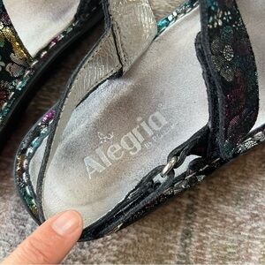 Alegria Verona Colorful Floral Sandals Black Boho Comfort Leather 7 Slip Hippie