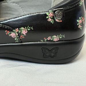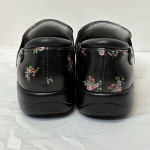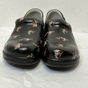 The Alegria Women Shoe Keli Goth Cutie in size 9M is a stylish slip-on loafer designed for nurses. With a round toe shape and flat heel, these black leather shoes feature a floral pattern and are slip resistant. The wedge heel and comfortable M width make them ideal for casual occasions, while the bohemian theme adds a unique touch to your outfit. Made in China under the Alegria Professional product line, these slip-ons offer both style and functionality for everyday wear.