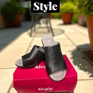 Alegria Women's Black Nappa Open-Toe Mules Very Good Condition size 38