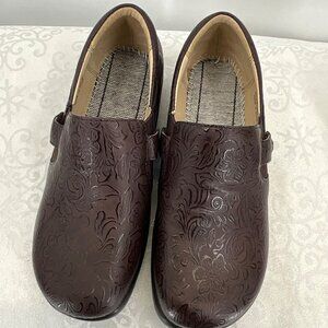 Alegria Women's Embossed Brown Floral Slip-On Shoes 38