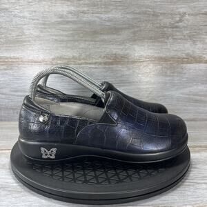 Alegria Womens Keli Blue Leather Croc Print Clogs Size EU 38 US 8