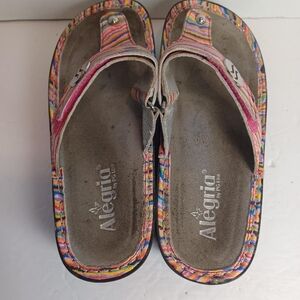 Alegria Womens Sandal Carina Electric Ave. Rainbow Leather Thong Comfort US 9.5