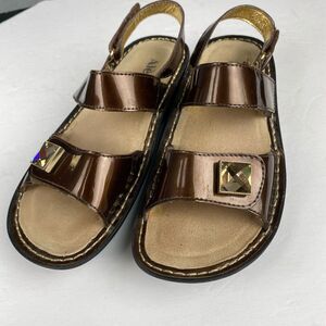 Alegria Women's size 37/6.5-7 Sandal Bronze Patent Slingback Jeweled Leather.