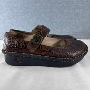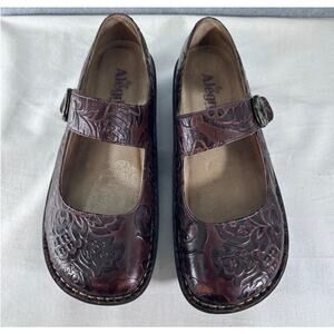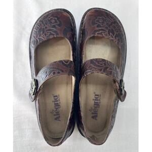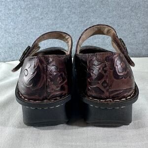 Alegria Womens sz 39 PAL-574 Brown Emboss Leather Mary Jane Clog Nursing Comfort