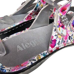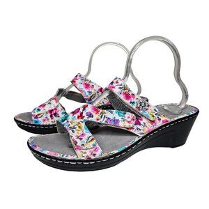 Experience unique elegance with the Alegria by PG Lite Loti Leather Blooms Floral Wedge Slide Sandal in multicolor size 42. This fashionable footwear offers comfort and style, perfect for any occasion.