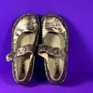 Alegria by PG Lite PAL-510 Metallic Gold Print Mary Jane Women's Shoe Size EU 37/US 6.5/7