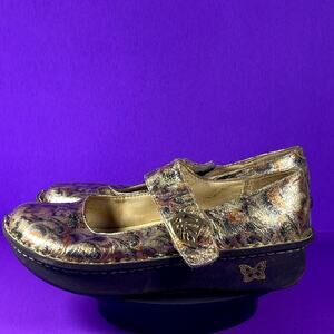 Alegria by PG Lite PAL-510 Metallic Gold Print Mary Jane Women's Shoe Size 6.5
