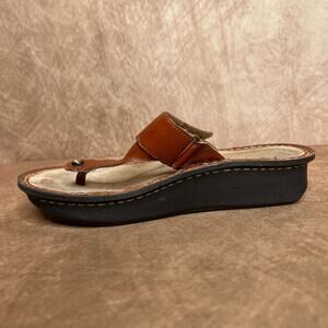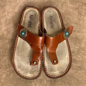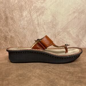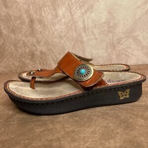 Alegria by PGLite Lug Sole Platform Sandal Brown Leather Slip On Medallion Stone