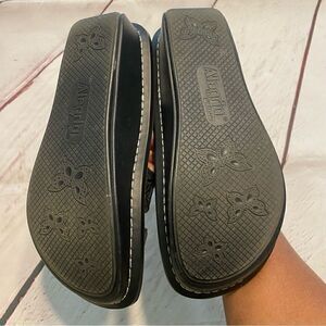 EUC Alegria Black Patent 3 Strap Slide Comfort Sandal Size 37 US size 6.5